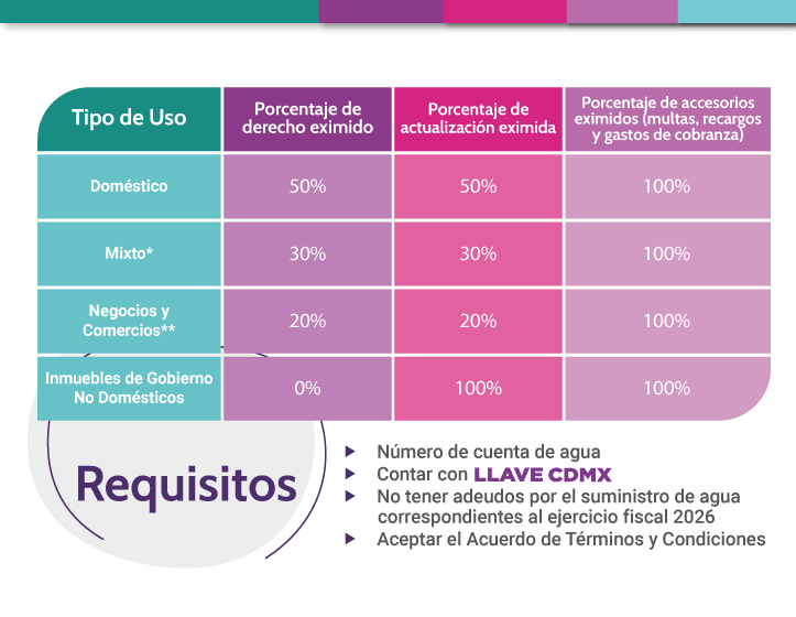 Son candidatos a este beneficio todas aquellas personas que presenten adeudos por el suministro de agua correspondientes a los ejercicios fiscales de 2021 a 2025. El programa está abierto para los cuatro tipos de usos de agua que gestiona esta Secretaría, lo que incluye tanto a hogares como a dueños de negocios locales. Esta es una oportunidad diseñada específicamente para facilitar que los usuarios se pongan al corriente con su administración, resultando de gran utilidad para quienes han acumulado montos elevados durante los últimos cinco años y desean liquidar su deuda bajo condiciones accesibles que protejan su economía y su patrimonio.